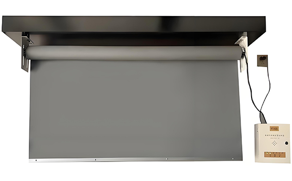 连接电源线和控制线,将永靖挡烟垂壁安装在支架上,并用螺丝固定。